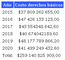 De acuerdo con los costos anteriores, los cuales tienen una alta relación con el valor del salario minino mensual legal vigente, y según la información obtenida a través de los informes anuales de gestión de la FAC, se puede evidenciar que, en los últimos seis años, para asumir el costo de los derechos fundamentales se ha realizado una inversión aproximada de $259 140 825 909.