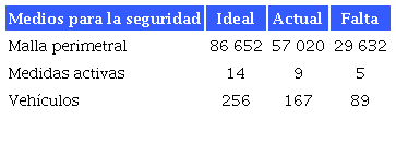 Además, si se considera comparar la inversión realizada en medios para la seguridad versus los gastos de sostener a un soldado en la FAC, muy seguramente la rentabilidad será mayor. Un soldado, de acuerdo con la ley que regula el servicio militar obligatorio, se desempeña como elemento del esquema de seguridad entre doce y dieciocho meses, los cuales una vez finalizados no generan un valor agregado a la institución, mientras que la implementación de medios para la seguridad (cámaras de vigilancia, sensores perimetrales, mallas de seguridad, movilidad, etc.) cuentan con una vida útil mayor, es decir, su uso puede prolongarse de tres a diez años, lo que significa una mayor rentabilidad.