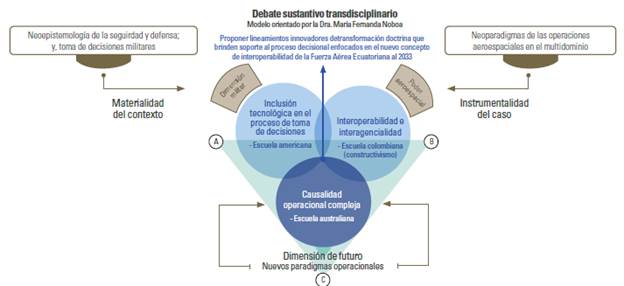 En la figura 1 se muestra de manera diagramática la causalidad del objeto de estudio transdisciplinario. En este artículo académico se vislumbra la necesidad de proponer lineamientos de transformación doctrinaria que brinden soporte al proceso decisional, enfocado en el concepto de interoperabilidad de la FAE al 2033.