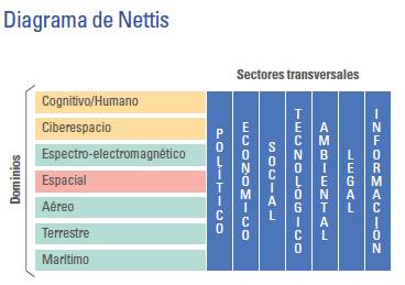 Cumpliendo con el objetivo de la investigación que corresponde a la construcción del lineamiento interope-racional que servirá como base para que la FAE avance en su camino hacia el cumplimiento de operaciones multidominio, se puede mencionar que la reestructuración planteada al diagrama de Nettis, donde se involucran a sectores estatales transversales sobre los cuales se debe analizar multidimensional y multiangularmente la amenaza, permitirá a los planificadores institucionales y del Estado mejorar sus procesos decisionales para desarrollar estrategias y tácticas efectivas e integrales, especialmente para enfrentar a amenazas híbridas y emergentes cuya complejidad y éxito radica en el uso de zonas grises operacionales existentes en el Estado.
