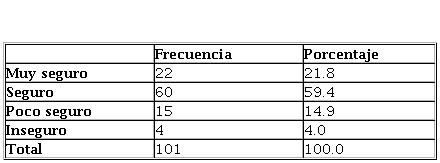 De los estudiantes encuestados el 59.4% consideran que se sienten seguros estando en su hogar, el 21.8% se sienten muy seguros, el 14.9% se sienten poco seguros estando en su casa, en tanto que el 4.0% se sienten inseguros incluso en su hogar.