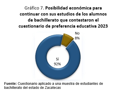 El 92% de los alumnos que cursan el nivel medio superior afirma que tiene posibilidades económicas para seguir estudiando y el 8% carece de ella. El 79% de los alumnos contestó que piensan conseguir empleo mientras cursan la licenciatura, en tanto que el 21% no lo considera necesario.