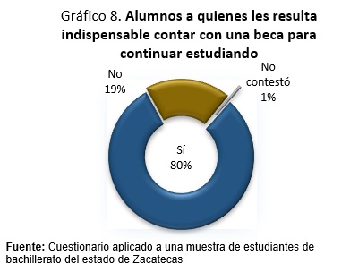El 80% consideró como indispensable contar con una beca para continuar con sus estudios, al 19% no le es indispensable. El 1% no contestó.