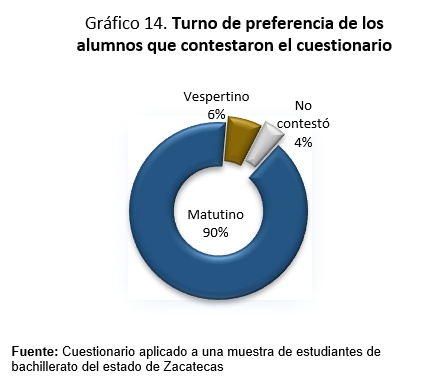 Sobre la preferencia por el turno que elegirían, 90% optó por el matutino, 6% vespertino y 4% no contestó.