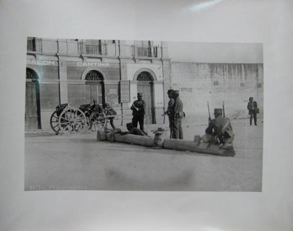 Esta adjudicación de armamento .sobre todo pesado. permitió que los rebeldes extendieran su radio de acción, específicamente ocupando los puntos exteriores de la Escuela de Comercio, situada en la calle de Emilio Donde, la Asociación Cristiana de Jóvenes (esquina de Balderas con la Av. Morelos) y la cárcel de Belén, situada en la contra esquina de la Ciudadela logrando hacer retroceder y “mantener a raya” a las fuerzas leales (Torrea, 1963). Además, durante el día 10 de febrero los preparativos relacionados con el posicionamiento de artillería en las calles aledañas a la Ciudadela por parte de los felicistas llamaron mucho la curiosidad de la población que optó por quedarse en la capital y quisieron ser testigos de los enfrentamientos aun arriesgando la propia vida. Dada la experiencia y destreza de los fotógrafos podemos suponer que Miret, Osuna, Tinoco y Melhado aprovecharon tales momentos para colocarse en los mejores lugares (Fig. 1).