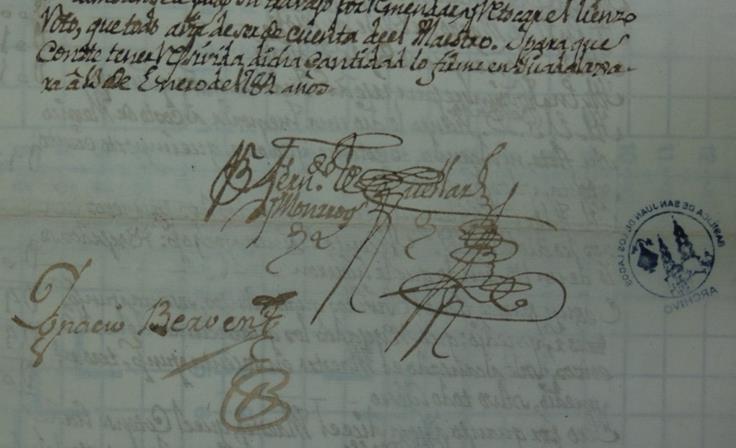 Por estar ya despedido, señor era muy regular, que si yo hubiera querido hacer aquí dicha obra, no hubiera buscado avío, (como testigo don Antonio Campos), y le hubiera escrito a vuestra merced, y aun prometiéndole algunas condiciones para que vuestra merced condescendiera en virtud de lo tratado, pero no haciendo nada de esto, parece que ahí su equívoco (ACNSSJLJM, documento 12).