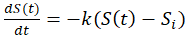 La fracción de sobrevivientes S(t) para este modelo es una solución de la Ecuación Diferencial Ordinaria de primer orden, Ecuación 5:
