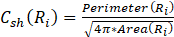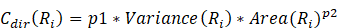 (3)Donde Variance(R.) está dada por la diferencia existente entre los elementos direccionales que pertenecen a R.. Area(R.) . Perimeter(R.)de R. representan el área y perímetro respectivos de dicha región.
