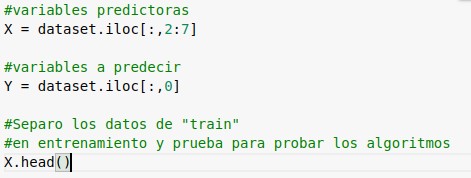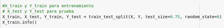 Creación del modelo, se crearon las variables “X” y “Y” para el entrenamiento; las variables “x” y “y” para realizar la prueba.