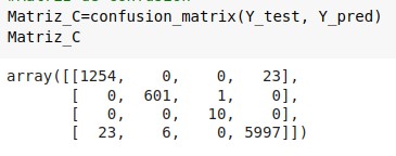C. Confusion_matrix : La matriz de confusión sirve para evaluar la precisión de una clasificación. Por definición, una matriz de confusiones tal que es igual al número de observaciones que se sabe que están en el grupo y se predijo que estén en el grupo.