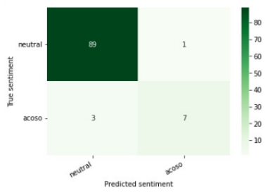 Finalmente, se obtuvieron los estadios de detección del ciberacoso. Nuestro principal objetivo es detectar cualquier situación de ciberacoso en Twitter; por lo que su funcionamiento parte de la adecuada formación de un algoritmo de aprendizaje supervisado. De ahí la importancia de proporcionar una base de conocimientos a partir de un análisis semántico y determinación de sentimientos para alcanzar la máxima tasa de precisión. Así, para llevar a cabo estas tres etapas ha sido necesario: (i) obtener la base de conocimientos, (ii) capacitación de modelos de aprendizaje supervisado, y (iii) implementación de estudios de casos.
