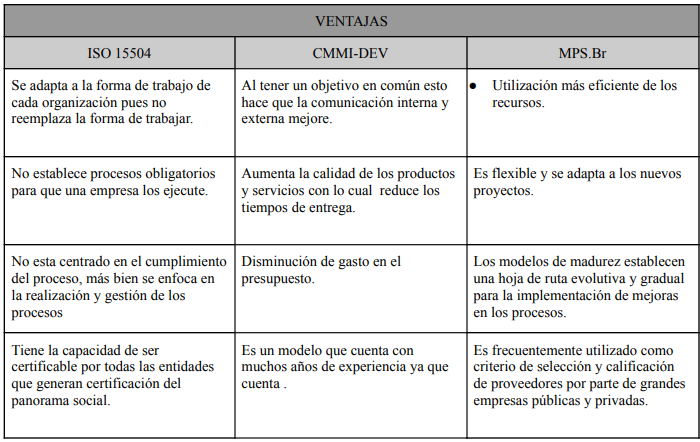 · Establecimiento de principales ventajas de ISO/IEC 15504, CMMI y MPS