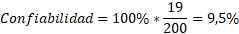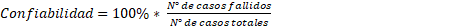Se realizaron 200 casos de uso para cada apartado. Los casos fallidos son aquellas situaciones donde se ejecuta el programa y se lanzan errores de codificación o el programa no responde como debería. Con la fórmula de confiabilidad (Ecuación 1) se obtienen los siguientes resultados: