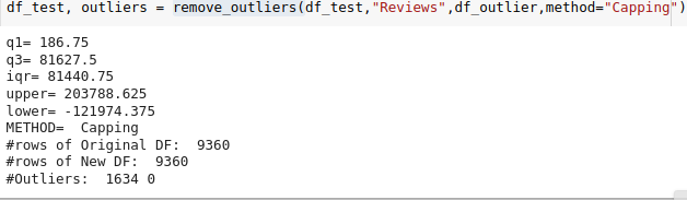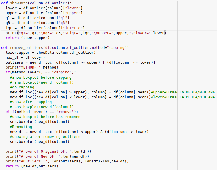 Se realiza un llamado a la función remove_outliers() para remover los outliers. Se ha de aclarar que se usará el método capping para tal fin: