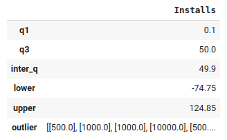 Para Installs tenemos que tiene puntos distanciados considerablemente de la caja: