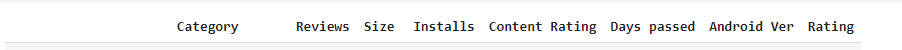 En este sentido las únicas variables a usar son: Reviews, Category, Rating,Size, Installs, Content Rating, Last Updated, Current Ver, Android Ver.