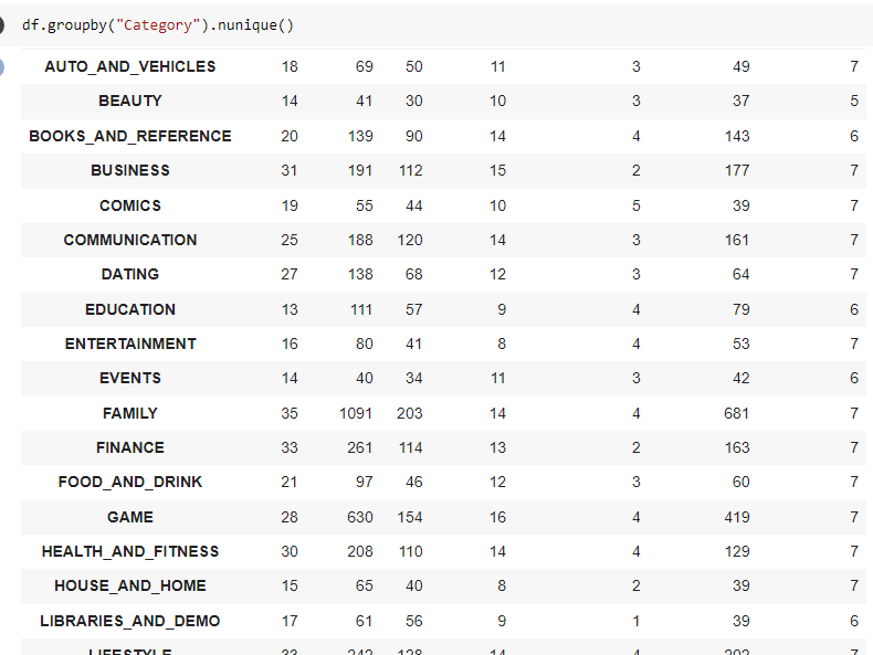 Cabe destacar que todos los valores “Varies with Device” en las filas de “Android Ver”, “Size”, entre otras, fueron eliminadas pues no representan una gran cantidad de datos y se decidió eliminarlas debido a la falta de datos que este valor provee.