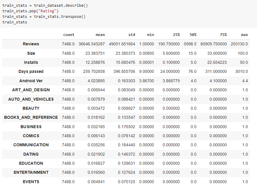 Use of neural networks to determine the rating of an application published in the Google Play Store