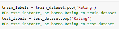 - Se obtienen las etiquetas del train y test (Se quita Rating porque es nuestro output)