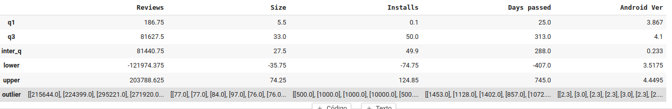 Al procesar la información con la función detect_outliers, se obtuvieron los siguientes valores