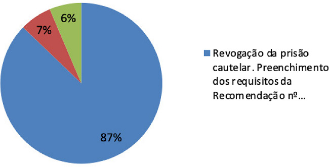 No que tange ao recorte temporal, considerando-se a impossibilidade material de analisar todos os acórdãos proferidos desde o início da vigência da Recomendação nº 62/2020 e o escopo de apresentar decisões recentes sobre o tema estudado, delimitou-se o lapso temporal da pesquisa empírica no período de 01.01.2021 a 01.07.2021. Quanto ao recorte processual, por meio do qual se elege um instrumento processual específico para ser trabalhado na pesquisa49, optou-se, neste artigo, utilizar as decisões proferidas em sede de habeas corpus, eis que corresponde ao instrumento utilizado, por excelência, para tratar da violação da liberdade de locomoção.