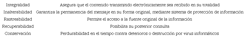 En el diseño de la pericia por el experto informático y en los posteriores juicios de admisibilidad y valoración de la prueba que realiza el juez, deberá tenerse en consideración la confiabilidad de la información, la cual dependerá de mecanismos técnicos que garanticen la integralidad, la inalterabilidad, la rastreabilidad, la recuperabilidad y la conservación. Al respecto, la Corte Constitucional colombiana explica estos elementos que se presentan en la Tabla 1.