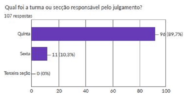 Por fim, buscou-se identificar qual orgão julgador dentro do STJ possuía maior incidência dos julgados referentes ao art. 396 do CPP. A maioria dos julgados é oriunda da 5ª Turma, representando um percentual de 89,7%. Na 6ª Turma há apenas 10,3 % dos julgados e em relaçao à 3ª Seção não houve nenhum julgado.