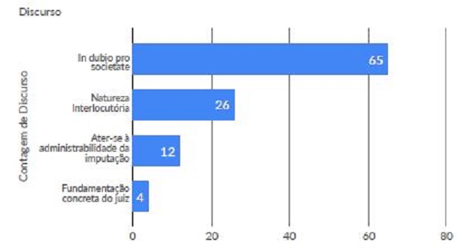 A pesquisa demonstrou que dos 107 acórdãos analisados, 65 destes apontaram que no juízo de admissibilidade da denúncia vigora o argumento do in dubio pro societate. Já em 26 julgados, a decisão da fase intermediária possui natureza interlocutória. Outros 12 determinaram que o juiz deve se ater às condições da ação processual para que se apresente fundamentação sucinta sobre o recebimento ou rejeição da denúncia. Por fim, em 4 julgados entendeu-se que o juiz deve apresentar fundamentação concreta.