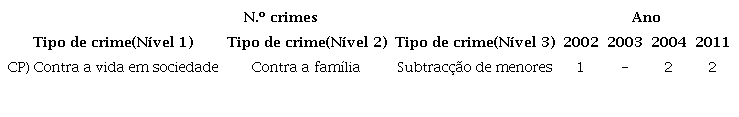 Da análise dos dados é possível verificar uma ligeira redução de crimes registados pelas autoridades policiais, por crime de subtracção de menor sem alterar, contudo, a tendência geral.