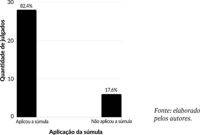 O segundo critério de sistematização aplicado consiste na classificação dos julgados em dois grupos: os que aplicaram a súmula 7/STJ e os que não a aplicaram. Dos 34 (trinta e quatro) casos analisados, 28 (vinte e oito) aplicaram a súmula 7: