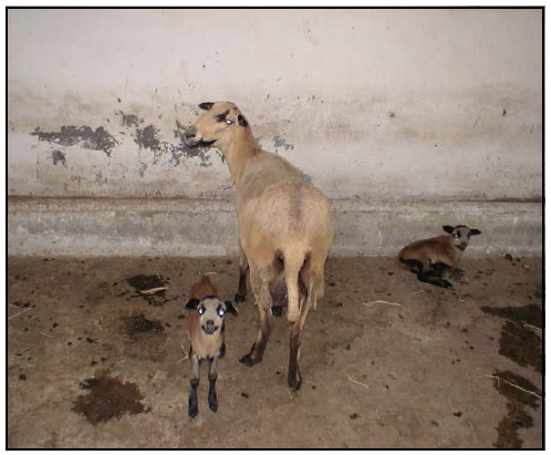 Se estudiaron ocho ovejas Blackbelly x Pelibuey provenientes de un grupo de 16 ovejas (tres primíparas y 13 multíparas) cuyo periodo de partos fue de 18 días. Las ovejas incluidas en el estudio fueron de octavo parto y con camadas de dos corderos (Figura 1).