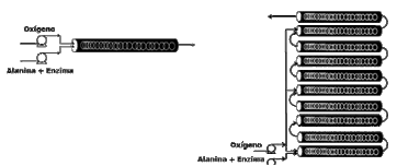 Gasparini et al. (2012) llevaron a cabo un proceso en el cual se tenían diversas fases, gas (oxígeno), líquido (solución de alanina) y sólido (la enzima inmovilizada). Se utilizó un Coflore ATR®, reactor
