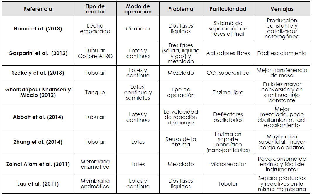 En el presente trabajo se revisaron investigaciones acerca de los reactores enzimáticos para conocer los problemas más comunes en su diseño, así como el tipo de operación y las variables que hay que considerar en el diseño de estos.