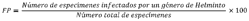 Frecuencia total parasitaria (FT) y frecuencia parasitaria por especie (FP)