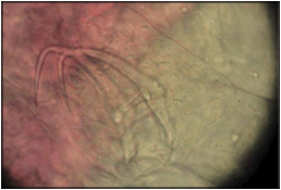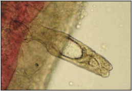 la Figura 6. Además, se encontraron machos, en los que fue posible observar la espícula copulatoria envainada.