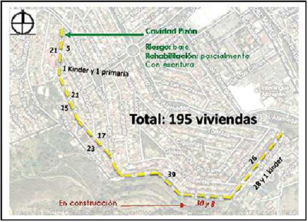 Lo anterior hizo posible efectuar una comparativa del área urbanizada en Atizapán de Zaragoza en relación con el área de zonas minadas, que permite ver cómo las construcciones se han asentado en suelos de zonas de riesgo. Es por ello que se realizó una entrevista a los responsables del crecimiento urbano del municipio, así como a los encargados de dar protección y seguridad a viviendas que se encuentran sobre cavernas subterráneas artificiales. Esto dio como resultado que Desarrollo Urbano y Protección Civil del municipio Atizapán de Zaragoza carecen de sustento, congruencia y comunicación de información entre los actores municipales involucrados y en relación con el tipo de casa afectada, manejo de usos de suelo, equidad en el apoyo a la población, ubicación de zonas de subsidencia minera, actualización de datos de plano de riesgo, autorización para construir en zonas de subsidencia minera, factores que agudizan el riesgo, garantía en técnicas nuevas como seguridad y protección a la vivienda y población, así como parámetros para valorar el riesgo.