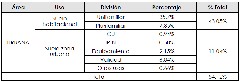 Se realizó un análisis del crecimiento demográfico y se relacionó con el aumento de vivienda que se ha generado históricamente en el municipio. Esto permitió explicar el aumento demográfico y crecimiento urbano en zonas con subsidencia minera, a causa de la demanda de vivienda que ha provocado la saturación de suelo para uso habitacional. Este crecimiento se ha dado, aun en zonas no aptas para uso habitacional, como es el caso de zonas con subsidencia minera. La saturación urbana ha llevado a tener actualmente una distribución de la superficie en el municipio, como se muestra en la Figura 8.