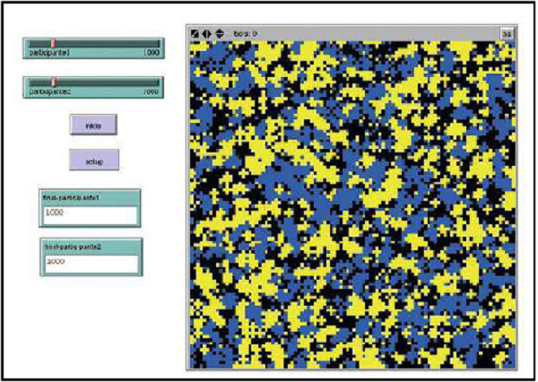En el estado inicial los agentes son distribuidos uniformemente, de acuerdo a la corriente política emulada, todos dentro de una red cuadrada de tamaño variante, en este estado la suma de todos los agentes siempre es menor o igual al 100% del tamaño de la red. En una fase subsecuente de actualización cada agente es seleccionado aleatoriamente y con reemplazo, para analizar su posible cambio de estado de acuerdo al estado predominante entre sus cuatro vecinos. Este análisis individual define una iteración y N iteraciones definen un ciclo C, cuando es alcanzado el primer ciclo el proceso se inicia nuevamente con condiciones distintas a las iniciales incrementando el número de ciclos n, este proceso evoluciona hasta alcanzar el estado de equilibrio; es decir, donde no haya más iteraciones posibles por realizar.