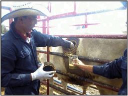 Para el estudio se emplearon cuatro animales fistulados de rumen (peso promedio de 700 ± 100 kg) (figura 1), los cuales se alojaron en corraletas individuales de 6 X 16 m provistas de bebederos y comederos individuales. Las dietas fueron isoenergéticas e isoproteicas y balanceadas de acuerdo con los requerimientos nutricionales de novillos en engorda (NRC, 2000).