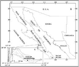 La cuenca del arroyo Insurgentes corresponde a la región hidrológica RH03, Baja California Sur-Oeste, Magdalena (INEGI, 1996), en cuya porción media se en-cuentra el poblado de Ciudad Insurgentes (figura 1).