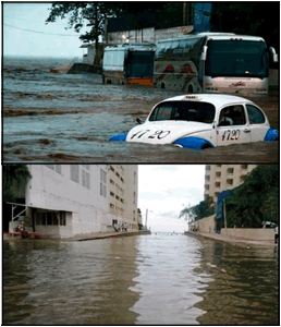En los últimos años, en la ciudad de Acapulco se han observado inundaciones en diferentes avenidas de la ciudad, por lluvias con precipitaciones a partir de los 100 mm, según la Comisión Nacional del Agua (CNA, 2015). La calle Juan Serrano y una porción de la Av. Costera Miguel Alemán a menudo son inundadas bajo estas lluvias (comunicación personal con el coordinador de Protección Civil y Bomberos de Acapulco de Juárez, Guerrero) y en presencia del fenómeno mar de fondo, definido como el movimiento de las olas que se propaga fuera de la zona donde se ha generado, pudiendo llegar a lugares muy alejados (Mandujano, 2006). Las acciones llevadas a cabo por autoridades, como el uso de retroexcavadoras para abrir un canal sobre la playa y bombas de agua tipo Vactor, con el fin de regresar al mar parte del agua que salió del mismo, también el retiro de arena, basura y automóviles acarreados por las olas o por corrientes de aguas pluviales, y el desazolve de alcantarillas, han sido encaminadas a solucionar el problema, pero no a las causas.