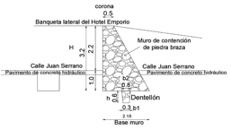 Para el cálculo de la base del muro de piedra braza (B) se usa la ecuación 1.