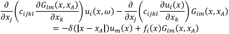 . Como puede verse en la ecuación (2), la función de Green es la respuesta del medio cuando es aplicada una fuerza unitaria en un punto.