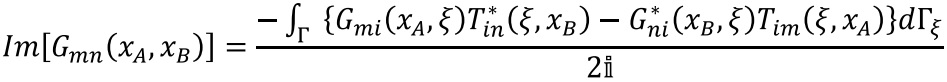La última ecuación muestra la relación entre la correlación cruzada de los campos de desplazamiento y la parte imaginaria de la función de Green. Es importante notar que la ecuación (8) implica que la función de Green puede ser recuperada mediante la correlación de movimientos sísmicos; es decir, mediante registros de campo.