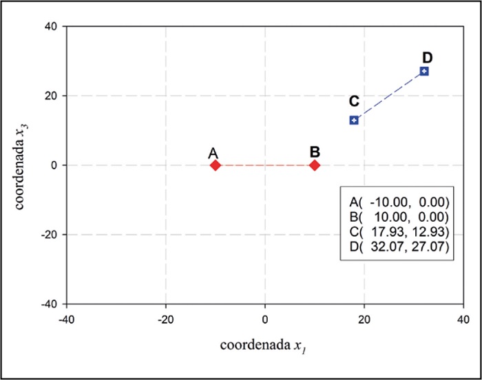 mostrará ahora la función de Green en un medio cuya relación de Poisson es para los puntos A y B, C y D, cuya orientación es mostrada en la figura 5.