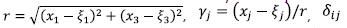 son recíprocamente no correlacionadas, tambien que las funciones se Green de desplazamientos y atracciones son expresadas en términos de funciones asintóticas, es posible arribar a la siguiente ecuación: