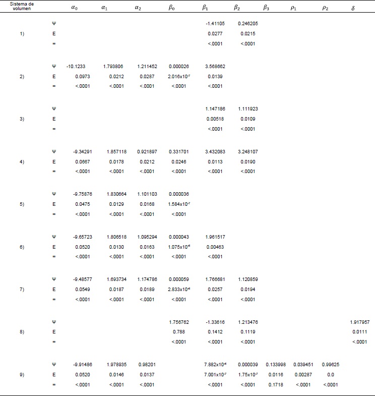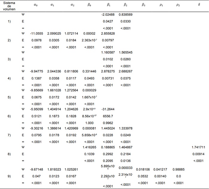 Primero se ajustaron de manera independiente, el modelo de volumen total de Schumacher & Hall, cuya expresión exponencial es: