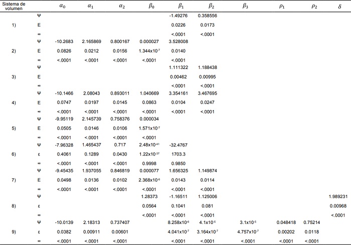 y los de ahusamiento a cada una de las tres especies evaluadas para determinar y justificar la bondad de ajuste de sus parámetros y su aplicabilidad a las especies estudiadas. Posteriormente, se ajustaron de manera simultánea cada uno de los modelos de ahusamiento con el de volumen para generar las funciones compatibles ahusamiento-volumen (tabla 2) y así poder determinar el volumen total o comercial a cualquier altura o diámetro fijado.