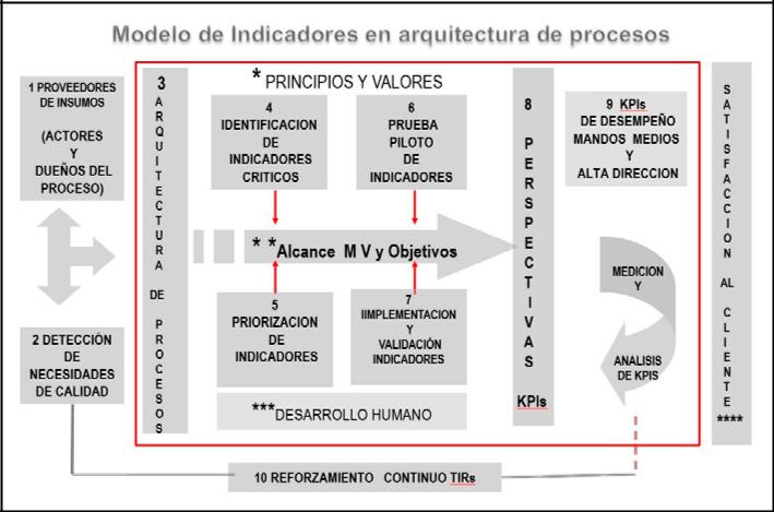4.Identificación de Indicadores. La construcción de la arquitectura de indicadores (también conocidos por KPI, por sus siglas en inglés) en procesos priori-tarios de actividades concretas se basa en los pro-cesos, subprocesos y etapas en la obtención de los mapas de procesos.