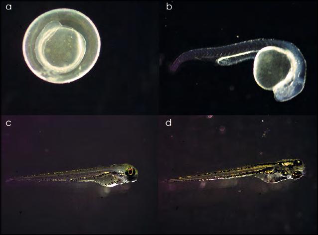 Peces cebra adultos de aproximadamente 6 meses de edad fueron mantenidos a una temperatura de 28 ± 1 °C con un ciclo de 14h/10h luz-obscuridad. Una noche antes del desove se colocaron trampas